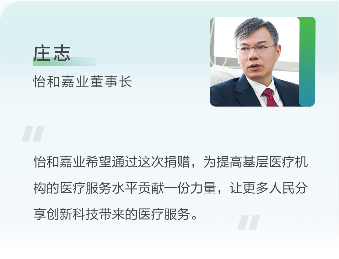 未来,怡和嘉业将继续积极推进优质医疗资源的下沉,助力提升基层医院的整体医疗服务能力,让更多人能够享受到优质医疗资源带来的服务,为建设健康中国提供有力支撑。