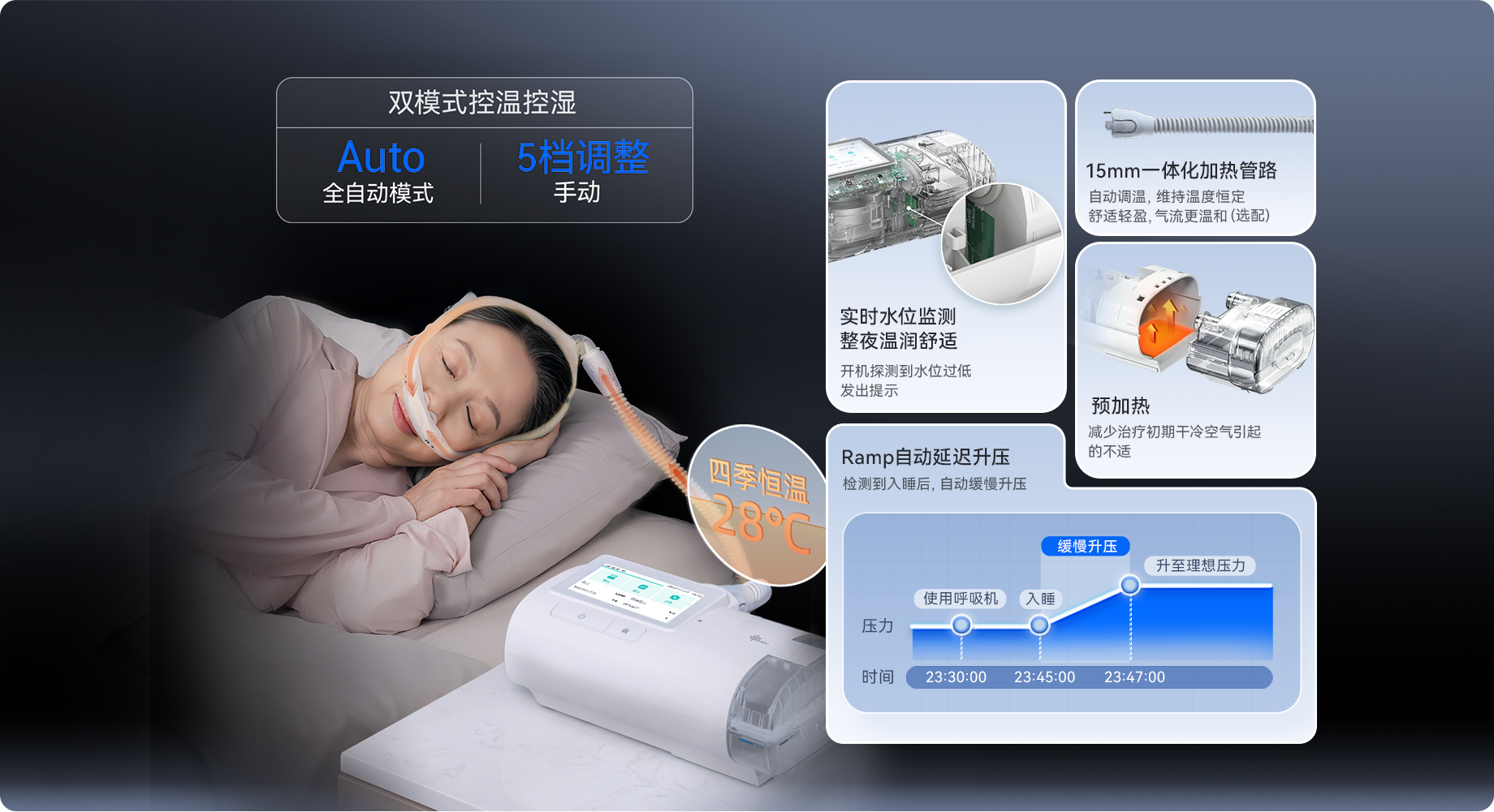 每个人对压力变化的感受不同 当发生呼吸事件,无论你想平稳过渡还是快速响应都能按设定节奏智慧调压