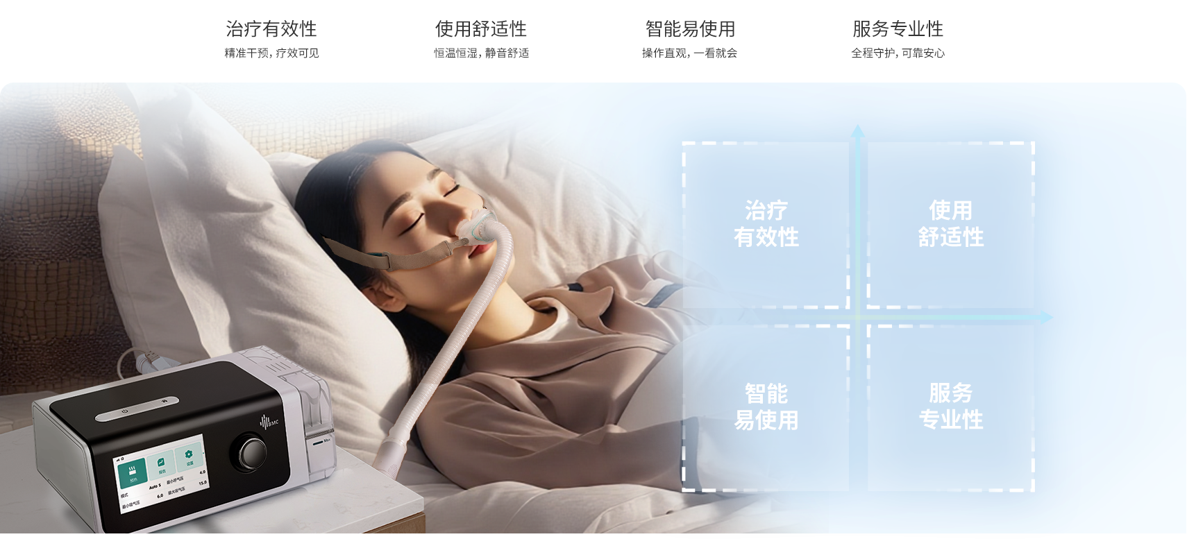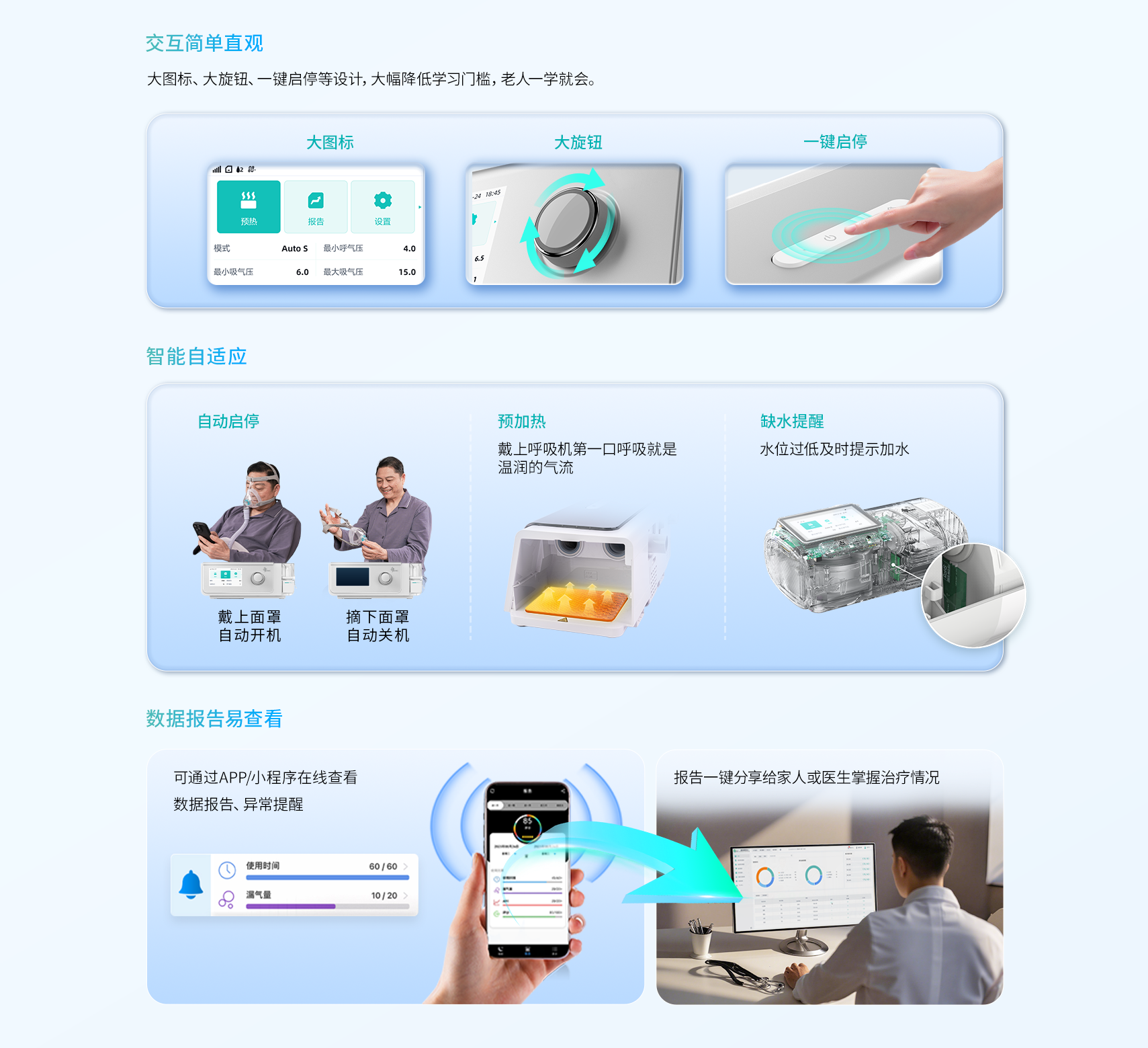好用的呼吸机要配戴舒适,用户可坚持使用,初用第一周的调试和适应尤为重要。
