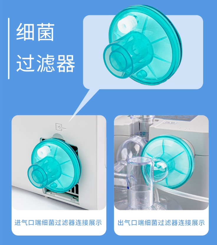 通过细菌过滤器这一关键配置,能够有效应对呼吸辅助设备污染及气体回流风险: